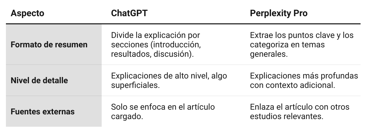 - Para la explicación de artículos científicos: Perplexity Pro es preferible si buscas un análisis profundo y contextualizado.