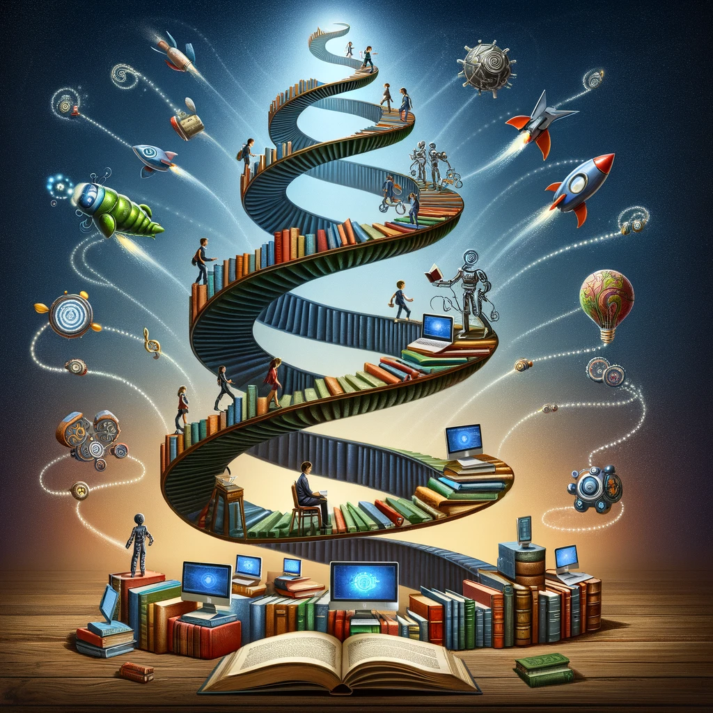 La aplicación de la teoría de espirales del aprendizaje en la educación busca desarrollar habilidades de pensamiento crítico, solución de problemas y transferencia de conocimiento a nuevos contextos, habilidades todas fundamentales en la era de la inteligencia artificial. Reconociendo la naturaleza iterativa del aprendizaje humano y de la IA, los educadores pueden diseñar currículos que no solo preparen a los estudiantes con conocimientos específicos, sino también con la capacidad de aprender de manera continua y adaptativa, una competencia clave en un mundo tecnológico en constante evolución.